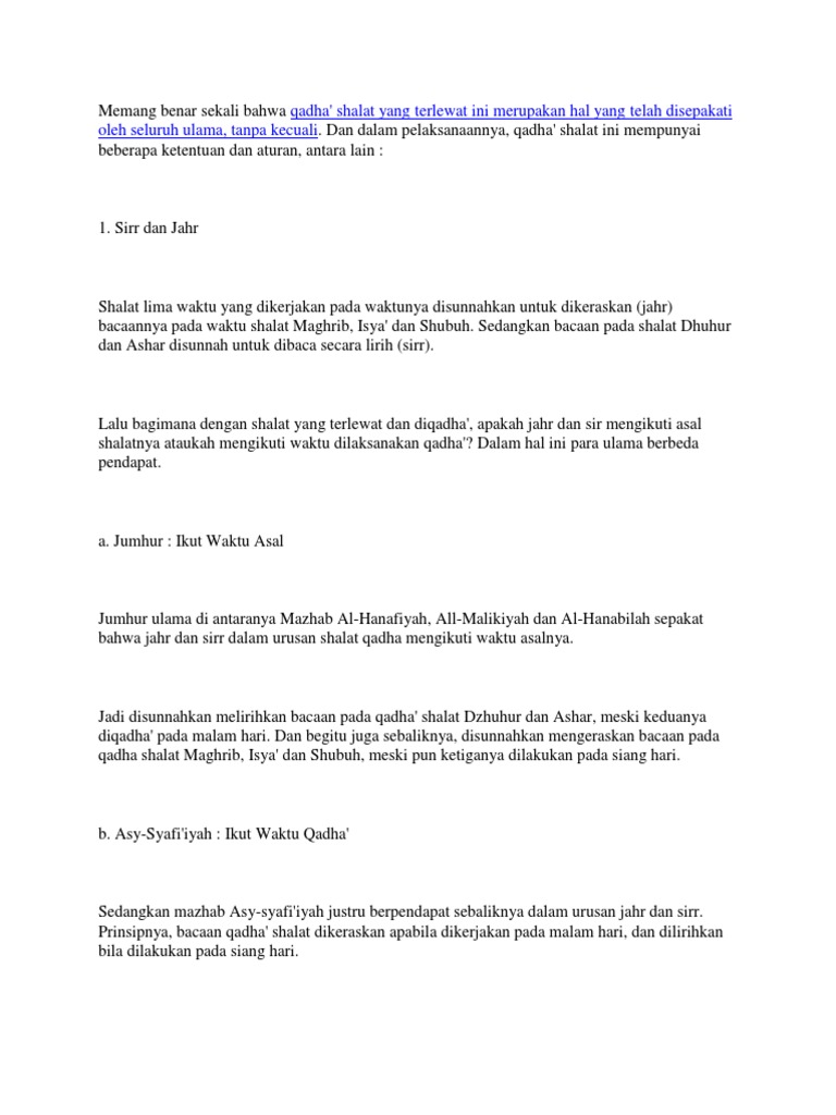 Sholat fardhu yang terlewat waktu, bisa dikerjakan dengan niat qodho sholat. Sholat ini dikerjakan pada petang hari sebagai penanda pergantian hari dalam agama islam. Sholat subuh dilakukan dalam 2 rokaat, dan lebih utama jika dikerjakan secara berjamaah di masjid. Bolehkah kita sholat magrib ikut berjamaah dengan jamaah sholat syarat di perbolehkannya sholat jamak maghrib isya. Niat adalah perbuatan hati, tidak perlu dilafalkan.