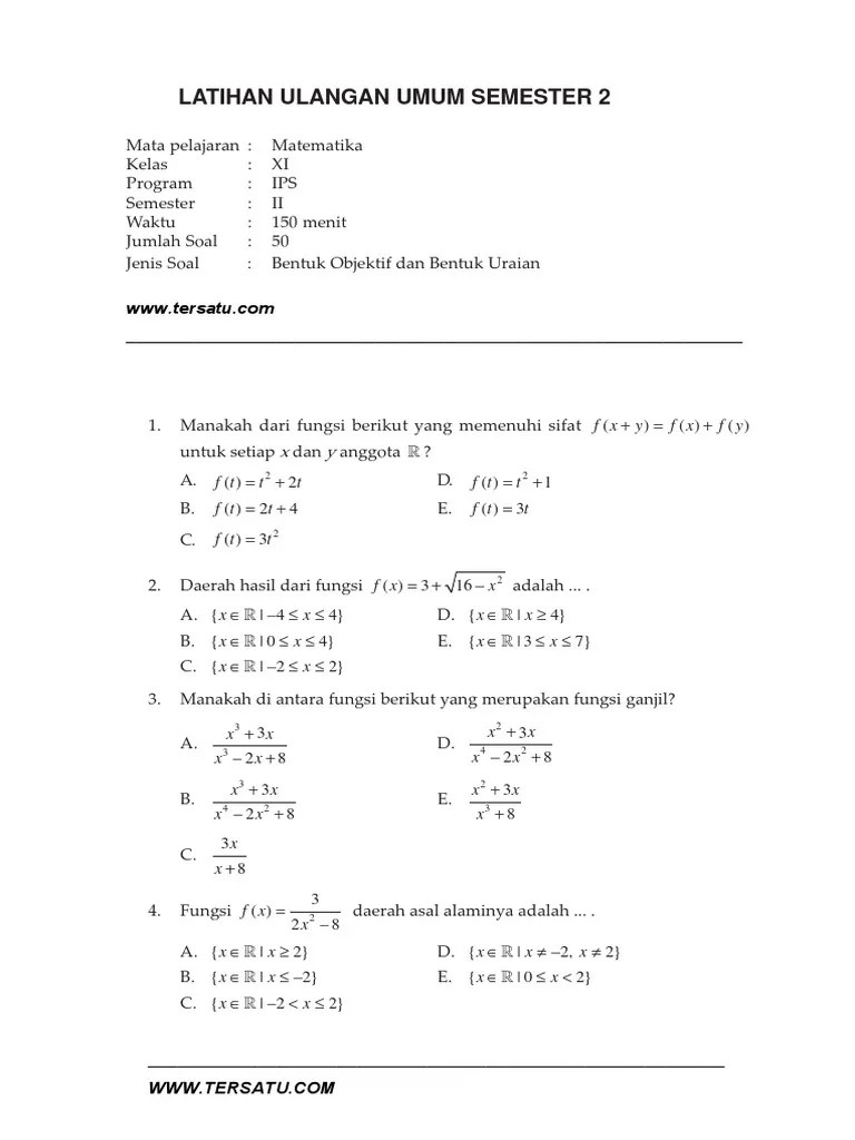 Soal ujian akhir semester matematika kelas sma kelas x soalujian net. Tanya jawab middot profil administrator middot kumpulan soal un soal Contoh soal matematika peminatan kelas 10 semester 2, soal uas matematika kelas 10. Download soal uas matematika kelas 10 semester 2 . Soal matematika kelas 10 semester 2 dan jawabannya kumpulan koleksi. Hasil dari latihan soal ujian akhir semester / penilaian akhir semester genap tersebut. Soal nomor samai 60 tentang trigonometri:. Buku pr matematika (wajib) sma/ma kelas x/10 semester 2. Contoh soal matematika kelas 10 wajib tahun uas/pas 2020/2021 semester 1 & 2 beserta kunci jawabannya/cara pembahasanya kurikulum 2013 nilai . Soal matematika sma kelas x semester > pilihlah jawaban yang benar! Super book kumpulan soal ipa untuk sma kelas x fusika biologi kimia. Dani masih kelas ii sekolah dasar.