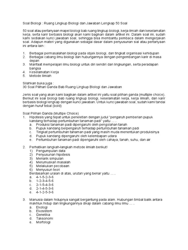 Soal uas mid semester berupa soal pilihan ganda dan essay semua bab 1, 2, 3, . Soal biologi dan jawaban soal biologi kelas 10 bab 1 soal biologi kelas 10 bab 2 soal biologi kelas 10 semester 1 kurikulum 2013. Tanaman yang paling umum tumbuh di pulau jawa diantaranya yaitu.… a. Makalah materi soal biologi kelas 10 diterangkan mulai dari. Berikut di bawah ini, pola soal biologi dengan jawaban, dimulai dari soal nomor 76 hingga dengan 85.